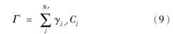 式中:Nr為反應r的化學物質數目;Cj,r為反應r中每種反應物或生成物j的摩爾濃度;η′j,r為反應r中每種反應物或生成物j的正向反應速度指數;η″j,r為反應r中每種反應物或生成物j的逆向反應速度指數;Γ表示第三體對反應速率的凈影響。這一項由下式給出: