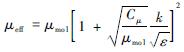 得到。方程(2~4)中的系數αT ,αk和αε分別為能量方程?k方程?ε方程的有效Prandtl數的倒數。它們由下式得到: