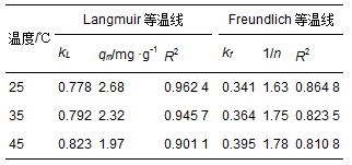 式中,kf和n為Freundlich常數; kL為Langmuir常數; qm為最大吸附量,mg ·g-1.