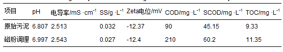 表 2 磁粉調(diào)理對(duì)污泥上清液基本性質(zhì)的影響