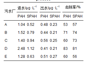 ?表 1 污水處理廠進出水水相中PAH和SPAH質量濃度及去除率