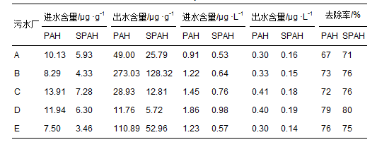 2.1 污水處理廠中PAH及SPAH的總質量濃度及去除率