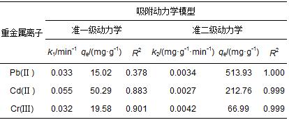 表 1 TNTs對Pb(Ⅱ)、Cd(Ⅱ)和Cr(Ⅲ)的吸附動力學擬合參數