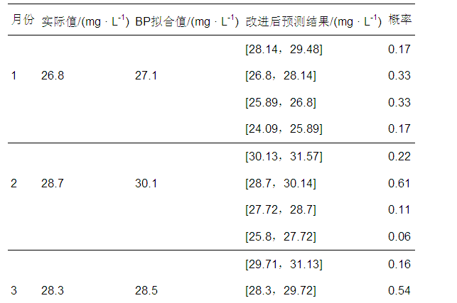 表5 污水處理廠2015年1—5月出水實際值、BP擬合值與馬爾可夫改進值對比情況