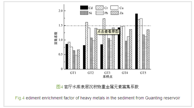 3)富集系數表明,表層沉積物中各重金屬的EF小于1.5,均未發生富集.水庫下游表層沉積物中重金屬Cd、Cr和Cu均出現了富集,說明下游的污染相對比較嚴重.