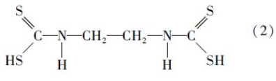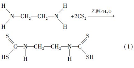 由表 1數據計算可知,EDTC中C、H、N和S的摩爾比為2 ∶ 4 ∶ 1 ∶ 2,可以推導EDTC的最簡式為C2H4NS2.結合EDTC的紫外光譜和紅外光譜分析可推斷乙二胺和CS2反應生成EDTC的分子結構式為: