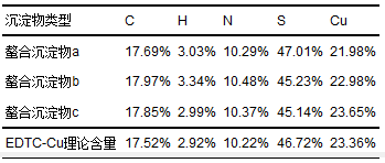 表2 三種螯合產物(a、b、c)和EDTC-Cu理論元素含量對比