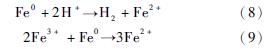 ? 反應(8)?(9)能夠為Fenton反應大量提供Fe2+,使得反應(1)能最大程度地進行,Fe2+的產生方式使得副反應減少,Fe2+利用率高,這樣產生的·OH就比其他2個反應體系多,從而使得COD去除率最高?
