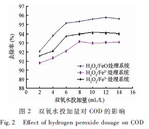 2.2 H2O2 投加量對處理效果的影響