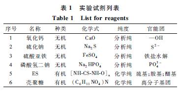 結(jié)合各種穩(wěn)定化劑的經(jīng)濟成本以及環(huán)境友好性,選取選取典型無機?有機穩(wěn)定劑和重金屬螯合劑里的新型藥劑作實驗研究,分別是氧化鈣?硫化鈉?硫酸亞鐵?磷酸氫二鈉?ES?殼聚糖,具體性質(zhì)如表1所示。