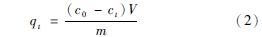 ? 式中:qt表示t時刻的吸附量,mg/g;ct表示t時刻水樣中的天冬氨酸濃度,mg/L。